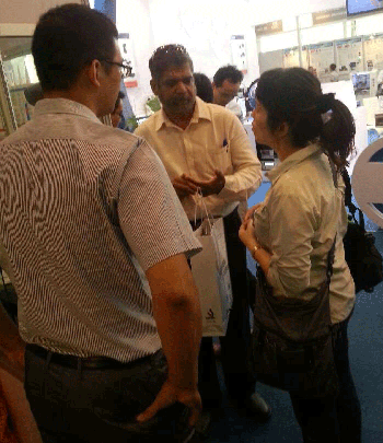 在展會上與海外朋友 暢聊產(chǎn)品及人生