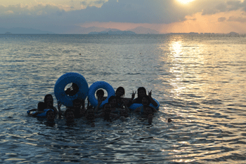 傍晚時(shí)分,我們?nèi)チ撕_叄捎诰频昱赃叺暮┤硕?公司組織了船去比較靜雅的地方,我們?cè)谶@單獨(dú)的享受大自然的氣息,可以盡情的玩耍和嘻鬧.