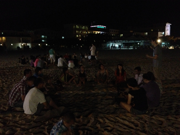 10點(diǎn)半,篝火晚會(huì)結(jié)束了,大家流連忘返,似乎沒(méi)有回房間睡覺(jué)休息意識(shí),于是又組織了"找內(nèi)奸"游戲,此游戲深刻的體現(xiàn)了大家的反應(yīng)能力和觀察能力和自我保護(hù)能力,直到凌晨1點(diǎn)左右,大家才依依不舍的回房間休息.