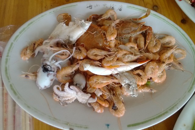 第二天午餐我們?cè)谝患倚∞r(nóng)家餐館吃的,值得一提的是,,這里有一道特別的菜----我們自已打的海鮮。大家嘗到了正真的海鮮-----原滋原味,有鮮又嫩。果然味道好極了!讓我們個(gè)個(gè)回味無(wú)窮.
