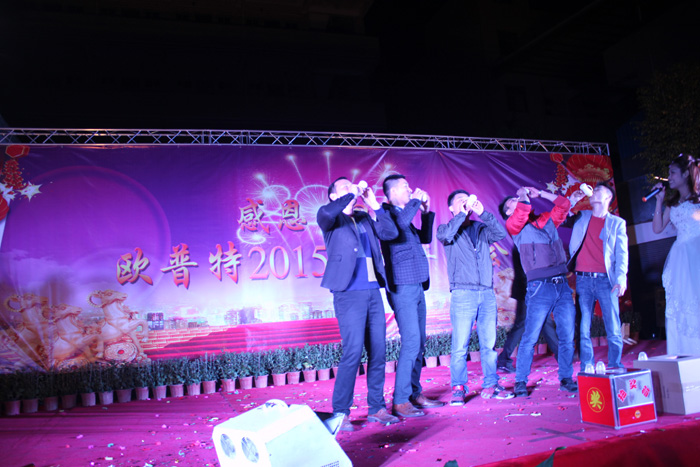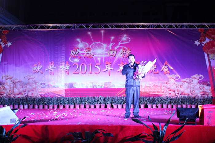 三“羊”開(kāi)泰迎新春,幸福歡樂(lè)一家人。2014年12月31日下午17:00,萬(wàn)眾期待的“感恩、回饋2015年歐普特新年晚會(huì)”在深圳市歐普特工業(yè)園隆重舉行,公司全體員工及員工家屬出席了此次盛會(huì)自12月征集節(jié)目開(kāi)始,各部門都踴躍報(bào)名,編排了許多風(fēng)格各異、形式不一的節(jié)目,經(jīng)過(guò)節(jié)目初審和再審,最終有10個(gè)節(jié)目入選,在2015年新年晚會(huì)為大家呈現(xiàn),包括有舞蹈、歌曲、小品、等多種形式。為了能夠給家人們帶來(lái)一臺(tái)精彩絕倫的晚會(huì),入選的節(jié)目都加緊步伐進(jìn)行排練,在晚會(huì)前進(jìn)行認(rèn)真的彩排及細(xì)致的服裝挑選,以求達(dá)到最好的演出效果。晚會(huì)前,所有的演員、禮儀、主持人及工作人員都早早到達(dá)晚會(huì)現(xiàn)場(chǎng)進(jìn)行準(zhǔn)備工作!主持人宣布晚會(huì)正式開(kāi)始,并介紹了到場(chǎng)的各位員工家屬。總經(jīng)理劉誠(chéng)先生上臺(tái)發(fā)表了新年賀辭,肯定了歐普特在過(guò)去一年取得的成就,指出了未來(lái)一年公司的奮斗目標(biāo)和前進(jìn)方向。這一天,我們相約在這里,共同分享我們的快樂(lè)!